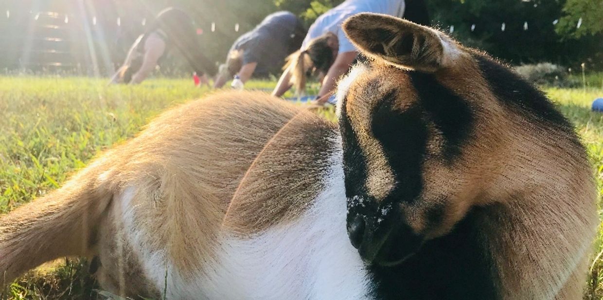 Simply put, goat yoga is the practice of a traditional yoga class, taught while goats happily frolic about.
